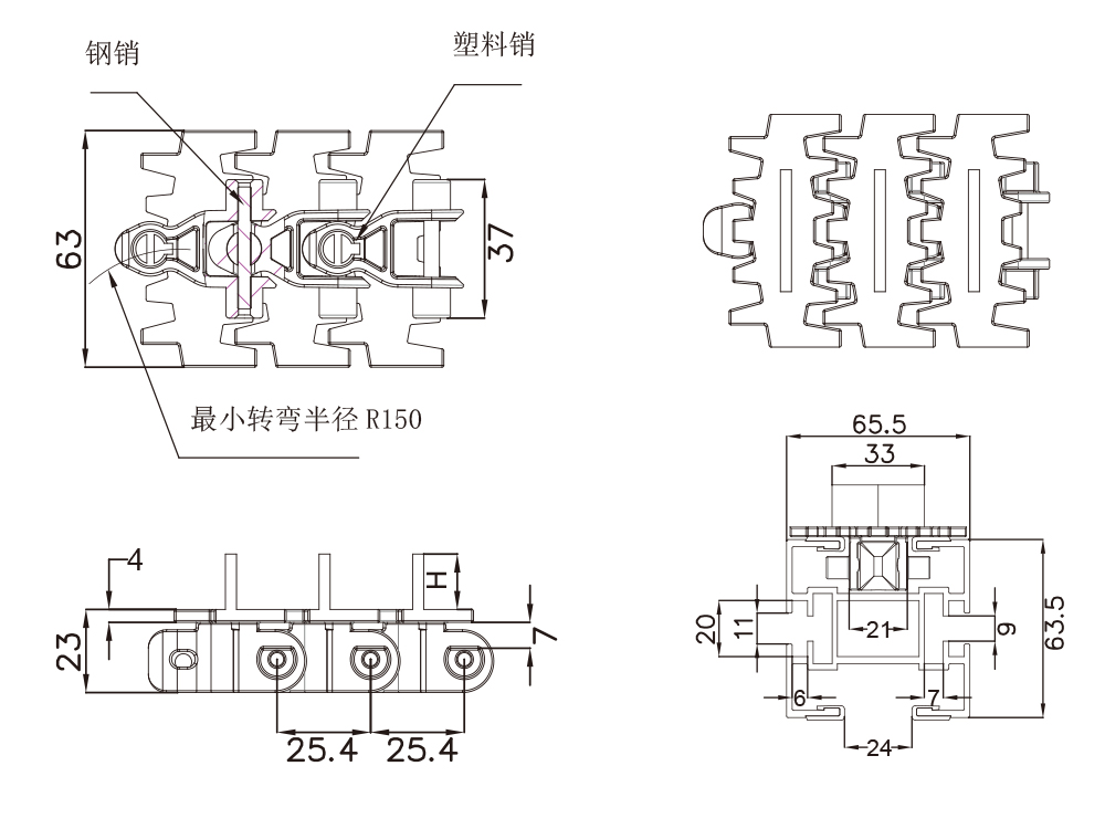 63一字中间提升链 主体 塑料销轴 插销 mm mm mm mm H mm kg/m