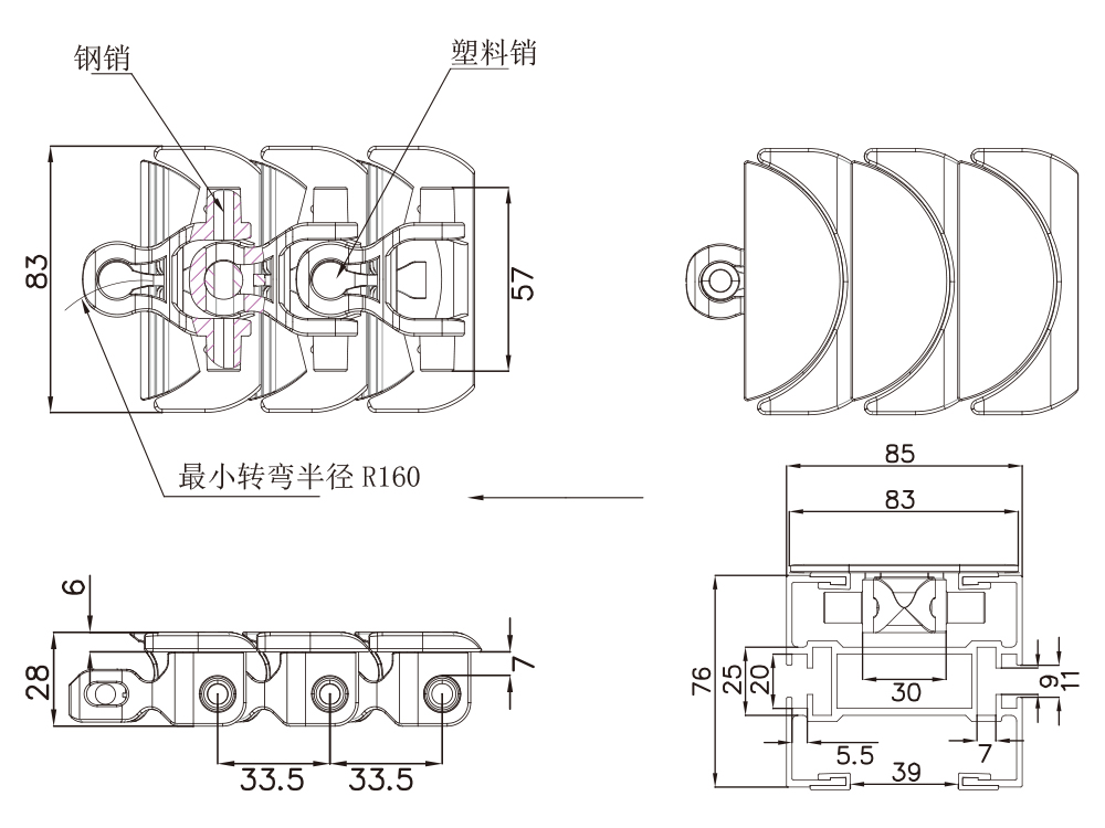 - 5、柔性链板颜色可定制白色 / 蓝色,主体材质可定制 PP/POK,也可定制防静电需求。
