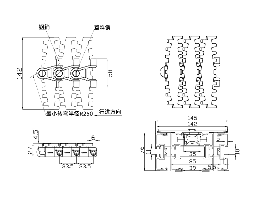 - 3、柔性链板颜色可定制白色 / 蓝色,主体材质可定制 PP/POK,也可定制防静电需求。