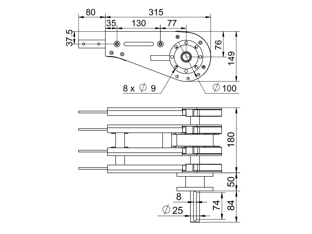 3、电机减速机可直接对接法兰使用,电机较重时需考虑支撑。
