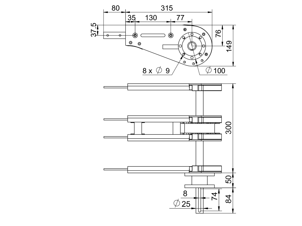 3、电机减速机可直接对接法兰使用,电机较重时需考虑支撑。