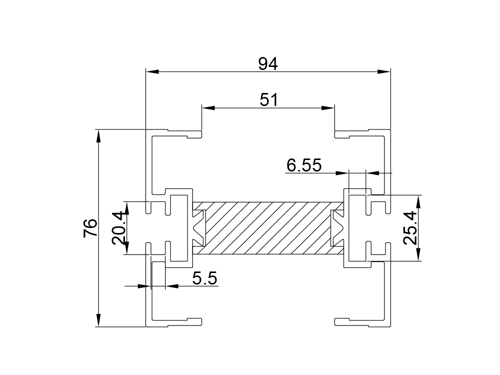 3. 3、两侧双层凹槽,内层用于连接条型材对接,外层可布置紧固件。