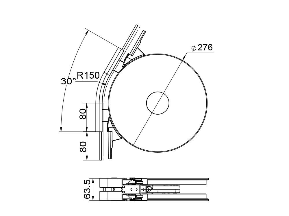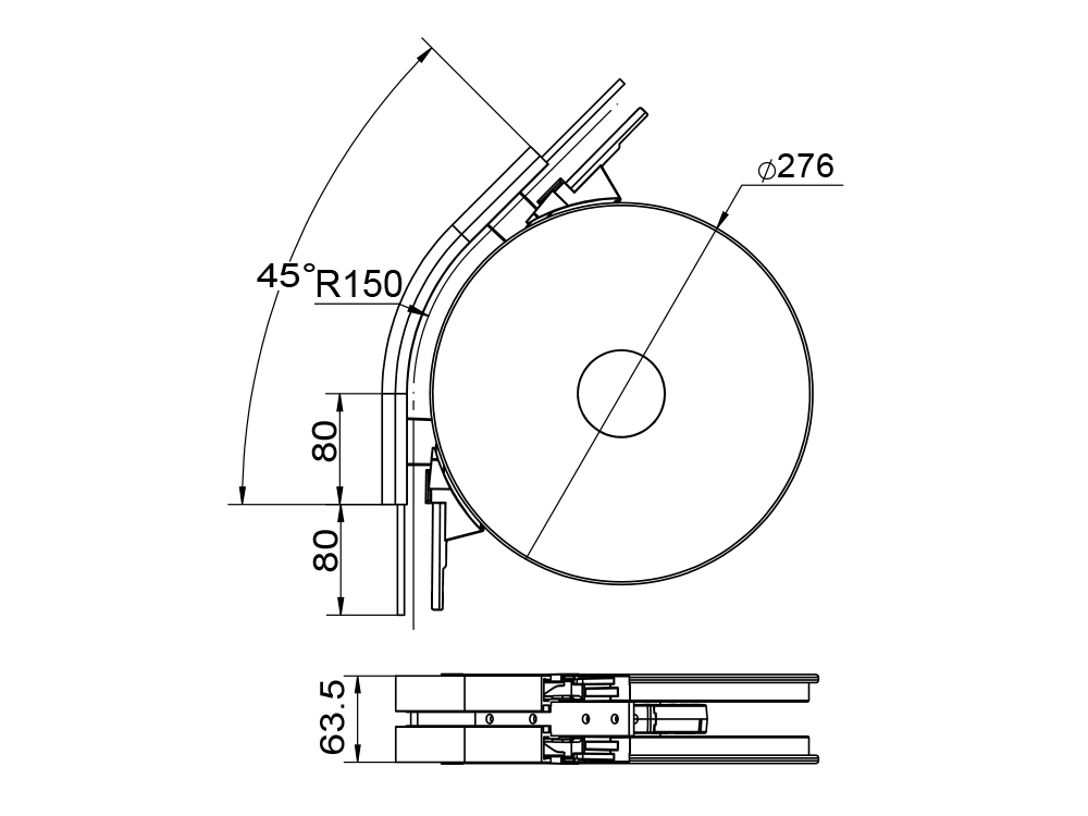 1. 1、适用于65输送梁系列,作为水平面转弯轨道部件,输送链最小转弯使用。