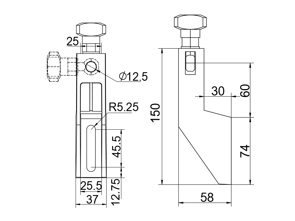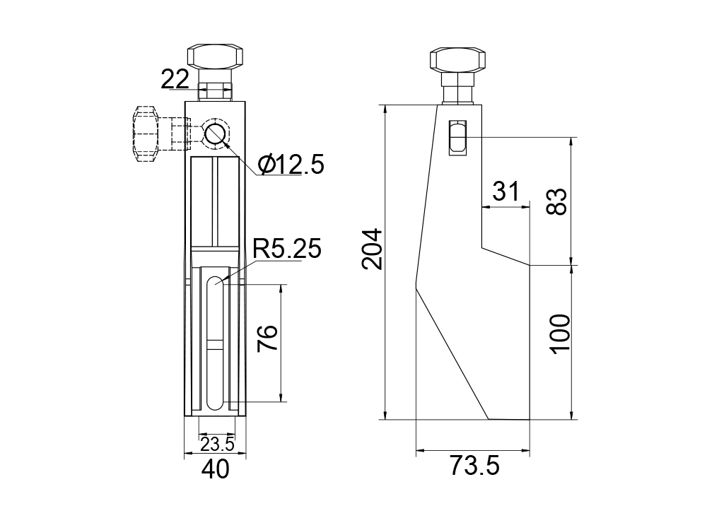 2、鱼眼螺栓支架头拉紧圆棒锁紧。端面两沟槽可锁紧水槽吊架。