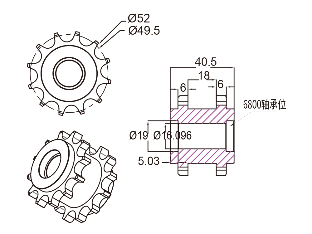 KF77EDW 77网带小从动轮 40.5 13.4 0.02 POM