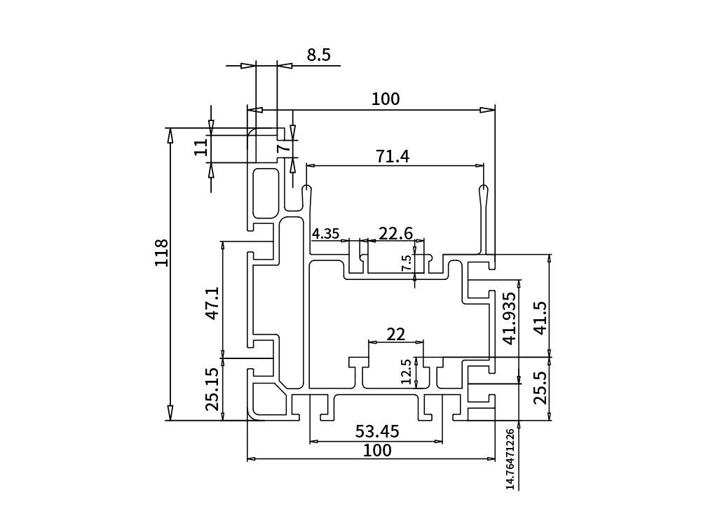 3. 3、左右下三面凹槽,可布置紧固件或连接条。