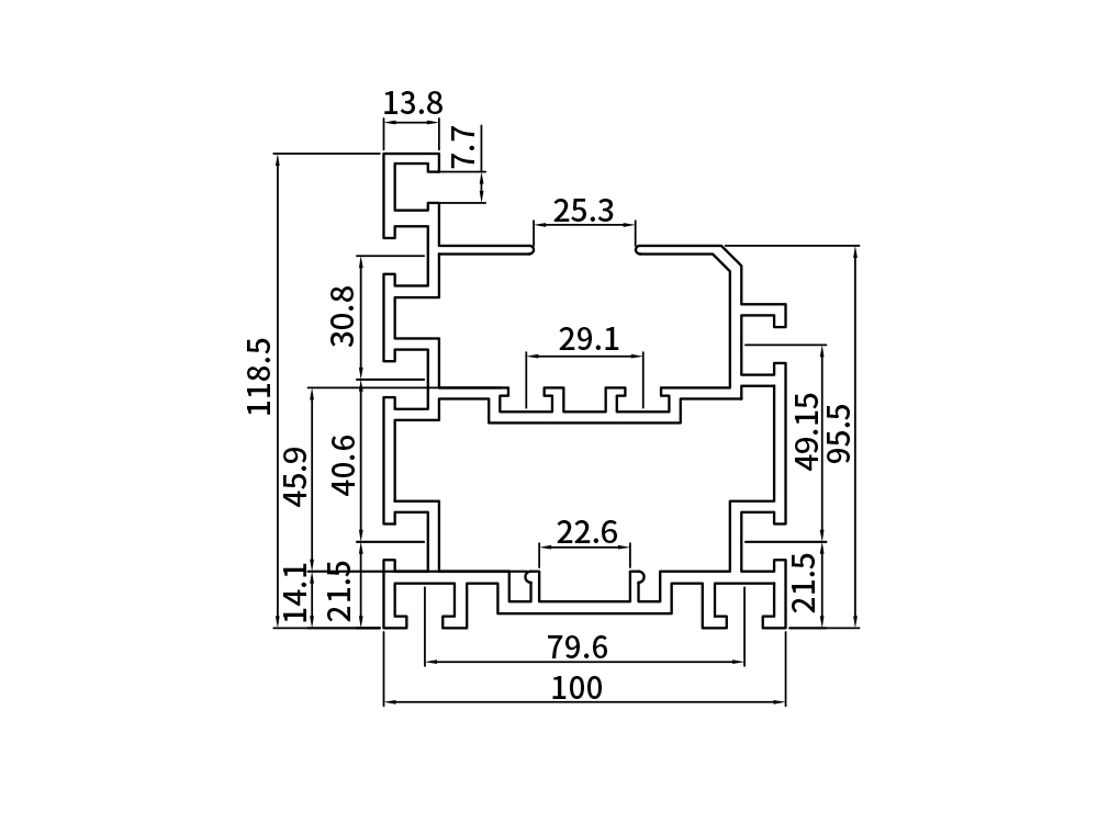 KFBS3038DG1 三倍速输送梁(KF-3) 118.5*100 6063 3