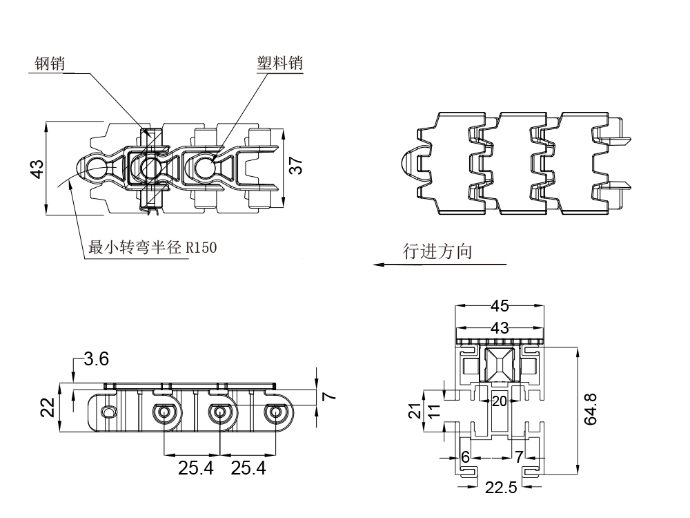 43平板链X3 主体 塑料销轴 插销 mm mm mm mm kg/m