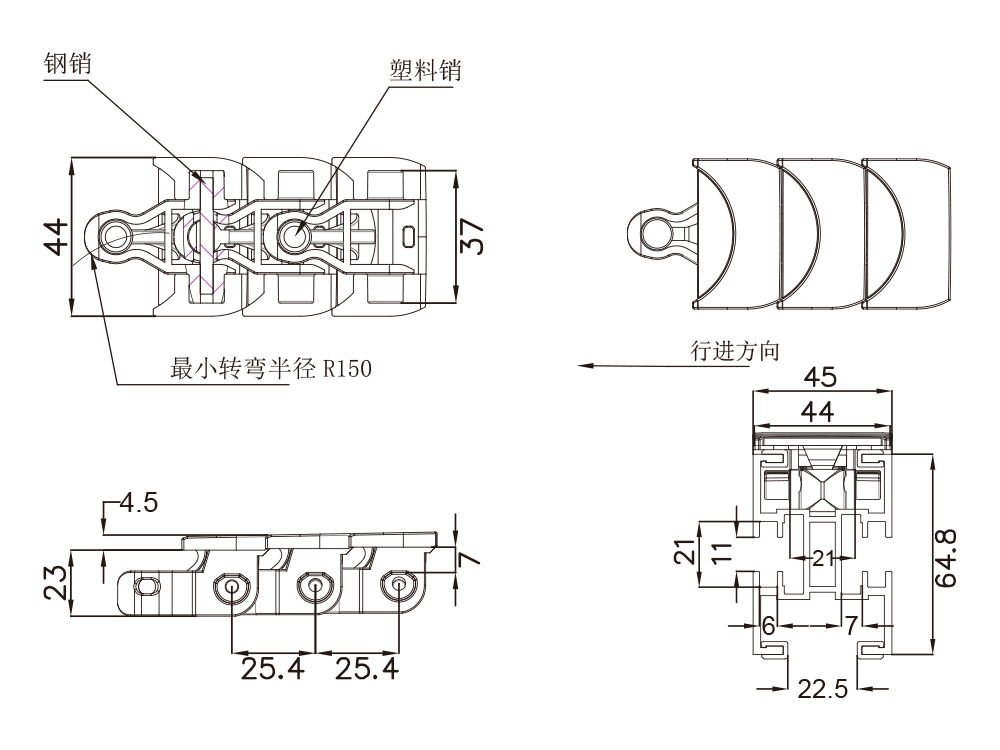 - 2、连接结构使输送链更加灵活,同一动力可实现多处转向。