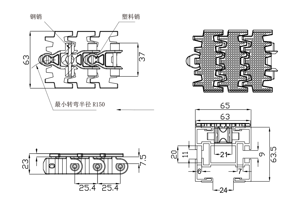 63麻点链 主体 塑料销轴 插销 mm mm mm mm kg/m