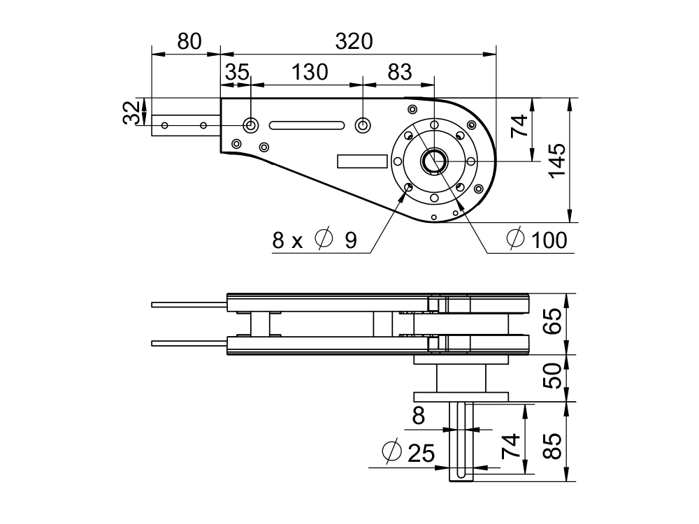 3、电机减速机可直接对接法兰使用,电机较重时需考虑支撑。