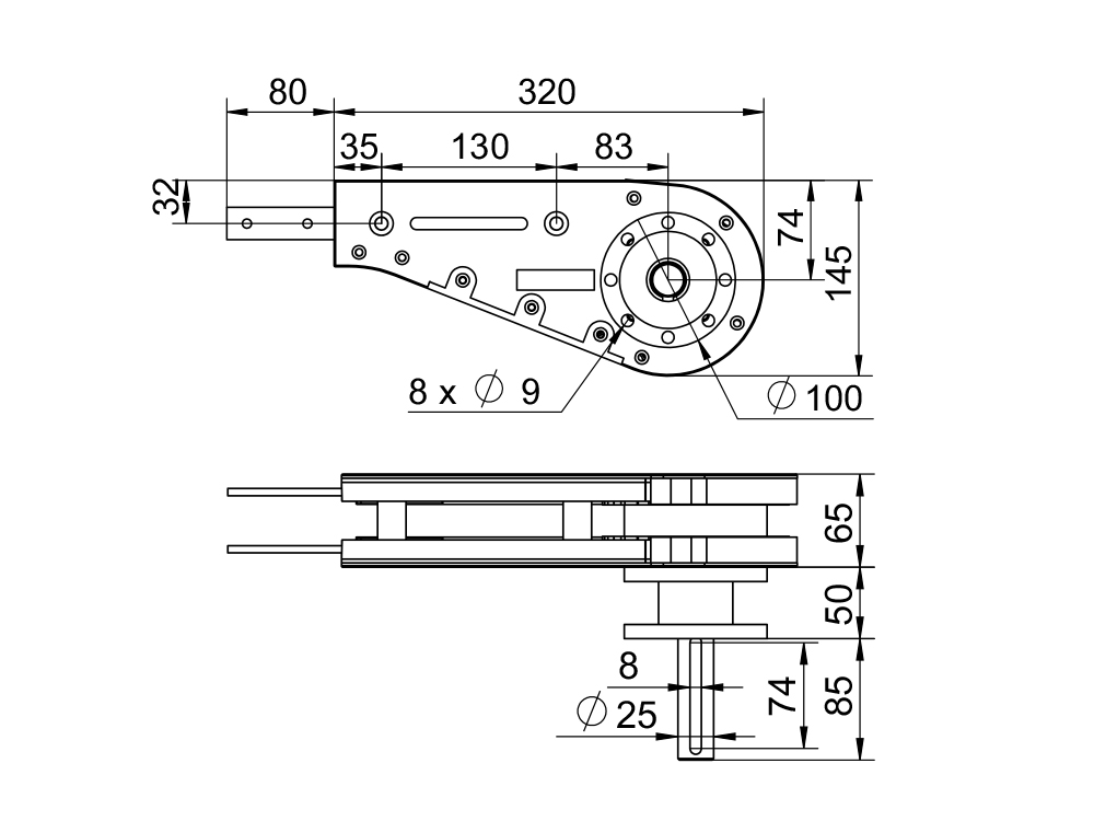 3、电机减速机可直接对接法兰使用,电机较重时需考虑支撑。