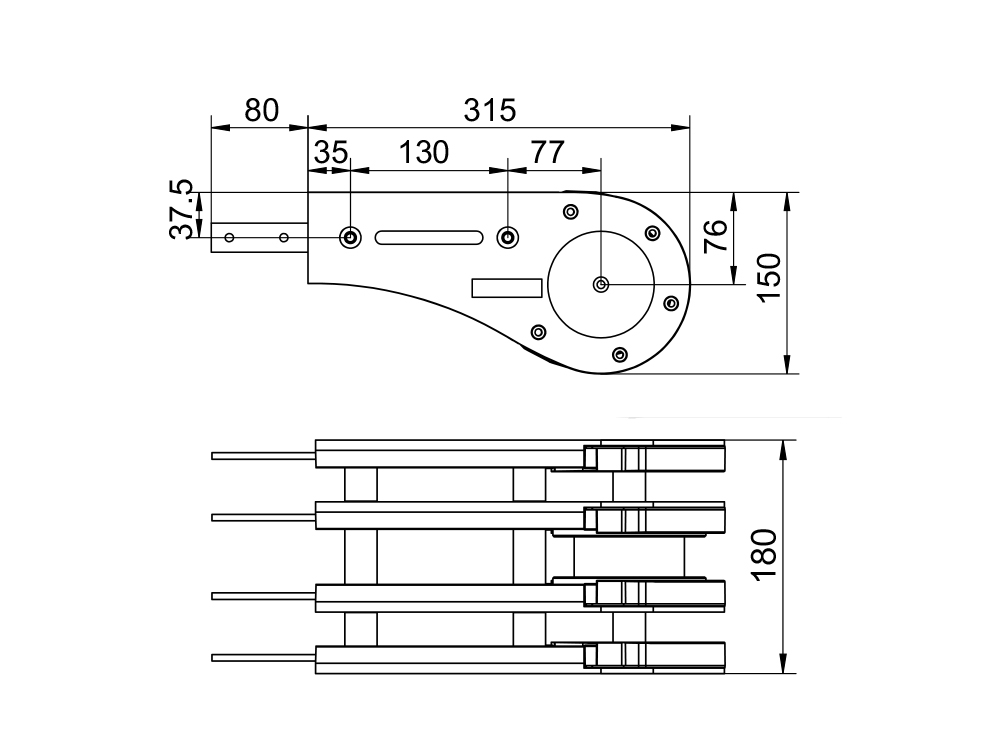 2、伸出连接条可直接对接输送轨道,安装便捷。