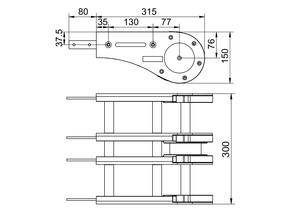 2、伸出连接条可直接对接输送轨道,安装便捷。