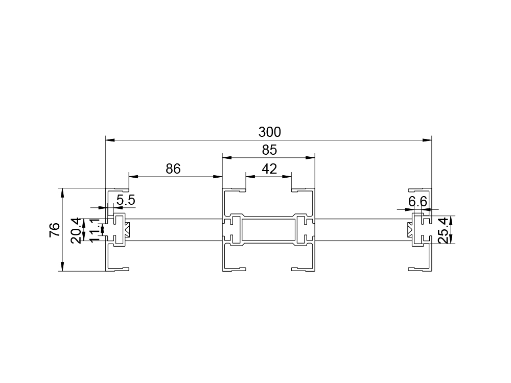 3. 3、两侧双层凹槽,内层用于连接条型材对接,外层可布置紧固件。