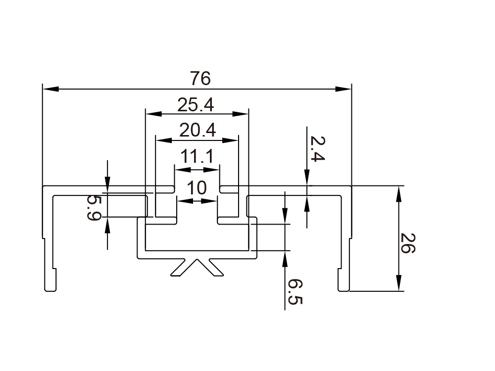 3、两侧双层凹槽,内层用于连接条型材对接,外层可布置紧固件(45输送梁为单层凹槽)。