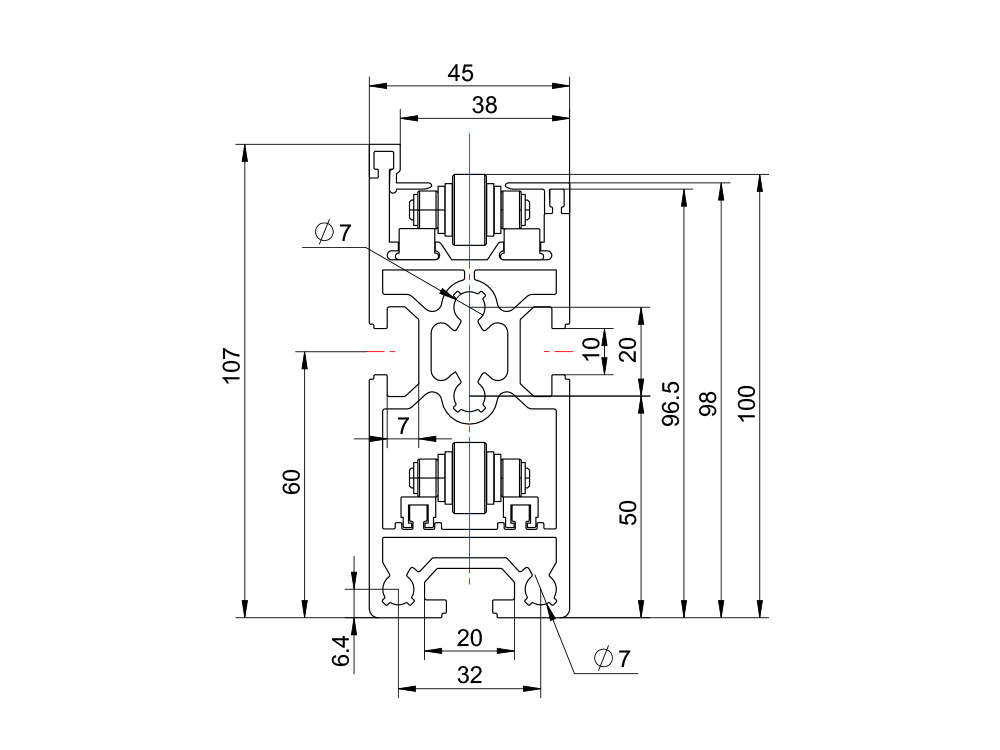 KFBS08DG1 标准单倍速输送梁 105*45 6063 3