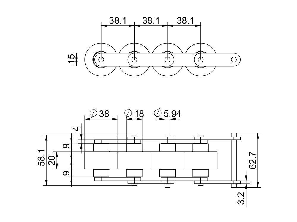 BS30-C212AG18-80L 三倍数链条 38.1 碳钢 碳钢 18 38 5.94 5.7